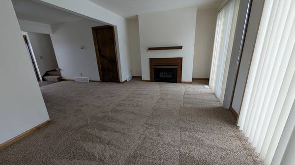 • Living room features a gas log fireplace and sliding glass doors