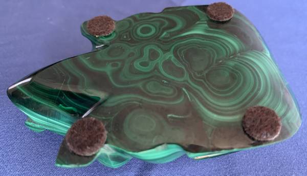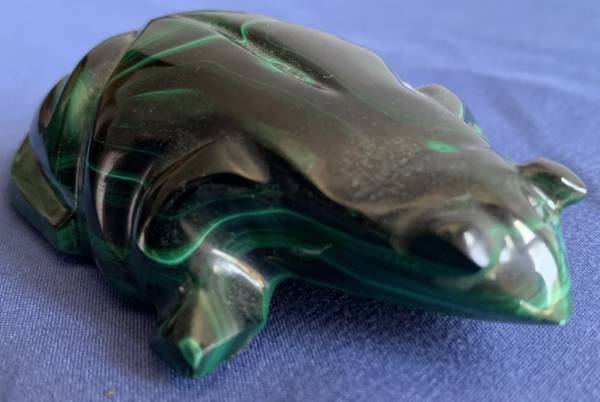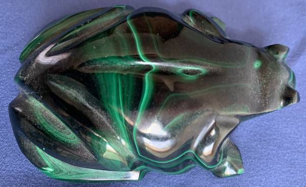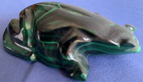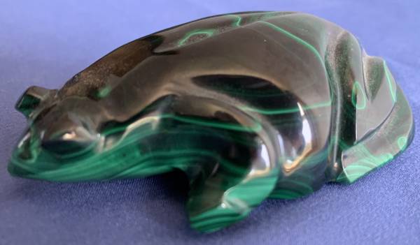 Beautiful Polished Dark Malachite Carved Frog is 3-3/4"x2-1/2"x1"tall. No cracks or chips and has great swirling circles, makes a interesting display piece. My price is $40, will meet at Meijers on Wilder Rd. and cash in person only. No shipping or money orders, checks.