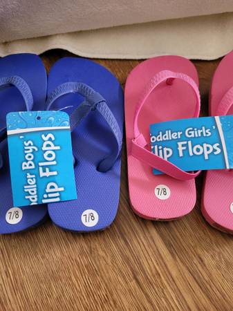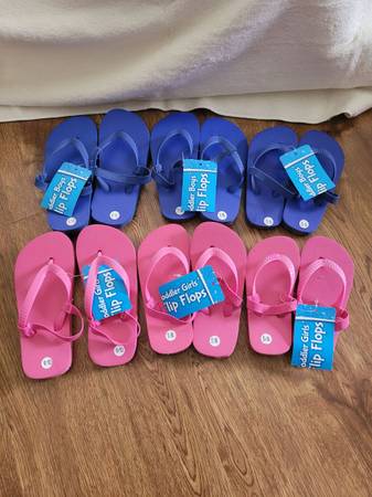 Toddler Girls And Boys Flip Flops Sizes are 5/6, 7/8, 9/10, pink and blue. Brand new with tag. See pictures for information and any imperfections. New Each pair is $1. I have more of each size. Bx...