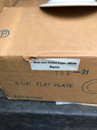 Have for sale commercial style restaurant plates. Made by Reno. Are a flat plate. Aide rim rolled edge. Size 10 1/2" 1 dozen in box have several dozen boxes. Asking $75.00 a case. Size 6 1/4" 3...