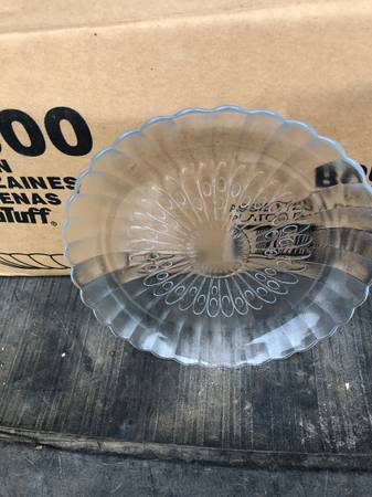 Have for sale clear glass plates with design. Made by Libbey. The size is 7 5/8". Great for salads or desserts. Are brand new old stock. Comes 3 dozen in a box 36 plates. Asking $70.00 a case. Have...