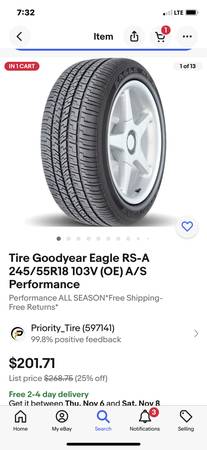New in box manufactured 2025 245-55-18 good year EgleRSA police tires 700 cash can pick up 8592 Seymour rd flushing mi48433 never been installed 989-245-469eight