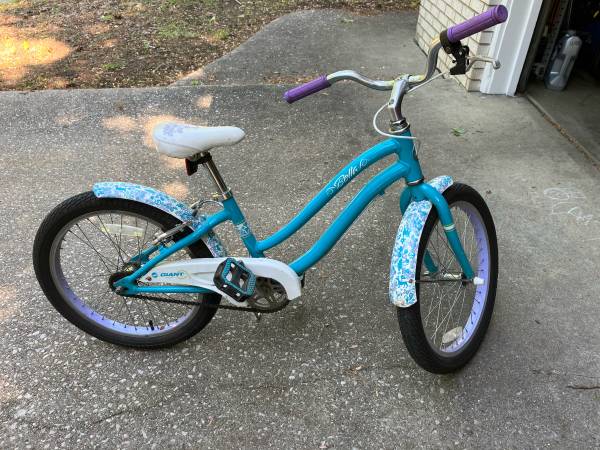 Giant Bella bicycle. Excellent shape for the shape it’s in. It’s seen its share of dents and dings and keeps on going. 20” wheels, hand brake and coaster brake.