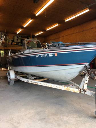 Deep V walleye boat, kept indoors. Very good condition, no tears in seats, one brand new Lund captain chair. Planer boards, rods, extra seats, lifejackets, marine radio, fishfinder, new battery, extra prop, cover we never used. Used one time this year. Second owner.