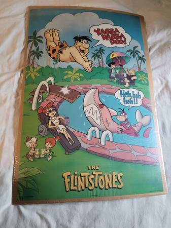 Flintstones Poster, measures about 21" wide x 32" tall, measurements are the poster only doesn't include the cardboard. Has clear wrap over poster. See pictures for information and any...
