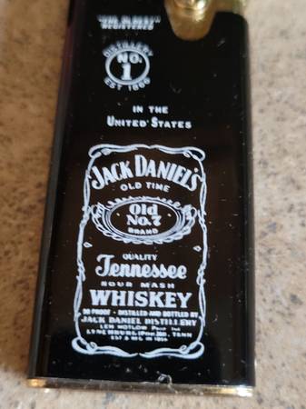 Vintage Jack Daniel's Lighter, measures about 1" wide x 2 1/2" tall. Has scuff marks see pictures. Does have spark when you push lever. Untested with fuel. Used