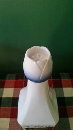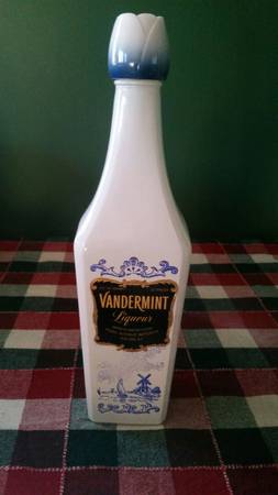 Vintage Vandermint Liqueur Empty Bottle, says 23/32 quart. Measures about 3" across x 11" tall. No cracks or chips. Glass bottle, plastic cap. I do ship, buyers pays shipping cost.