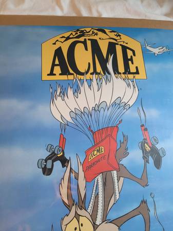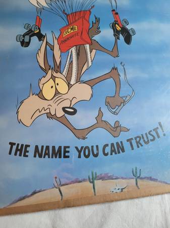 Wilie E. Coyote Poster, measures about 22" wide x 28" tall, measurements are the poster only doesn't include the cardboard. Has clear wrap over poster. See pictures for information and any...