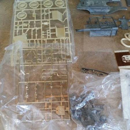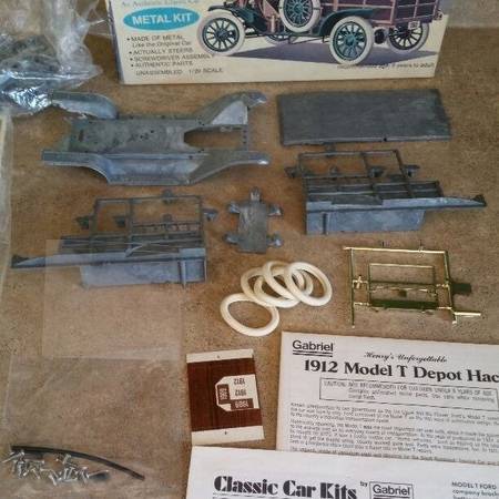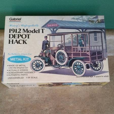 1912 Model T Depot Hack Metal Kit 1/20 scale unassembled, packages are still sealed. Lift up hood and detailed engine, white rubber tires, brass colored ornaments, textured plastic seats and...