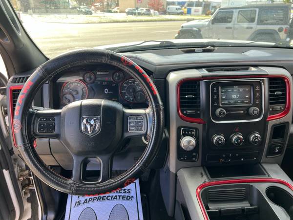 Stunning 2015 Ram 1500 Rebel Crew 4x4! This truck is in excellent condition inside and out. The exterior is white with graphite metallic lowers. The exterior interior is very clean with black and red Rebel seats! It has the 5.7L V8 HEMI engine in it with an automatic transmission. The engine starts quickly and runs quietly! The transmission shifts smoothly. It drives straight, no sway or pull. No clunks. No leaks. No issues! Clean Green title! Serviced, safety inspected and ready to go!CALL/TXT DYLAN: 810-275-2497FOR MORE INFO OR TO SCHEDULE A TEST DRIVE CALL/TXT 810-275-2497 WWW.ROUTE23AUTO.COM