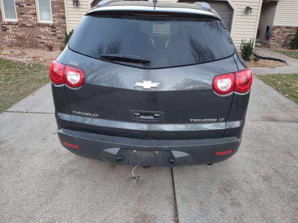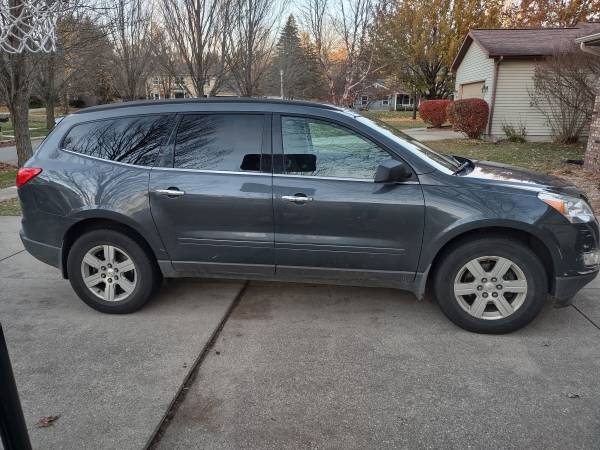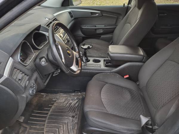 2011 Chevy Traverse has been my daily driver for the past 10 years. AWD is very nice, especially on winter roads. Engine died at 156xxx miles and was replaced with a re-manufactured engine in spring of 2022 and has run smoothly since. Overall in good condition; pictures show scrapes and scratches and condition of interior. A few minor issues: Tire light is on because the tire monitoring system doesn't work. Rear window wiper doesn't work but defrost does. $3600 or best offer