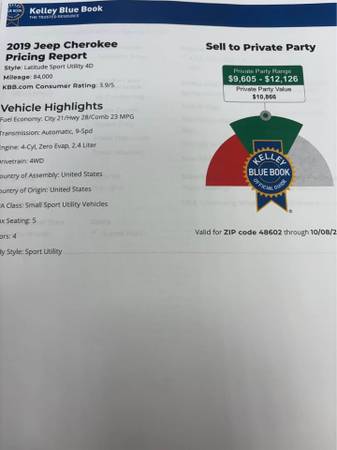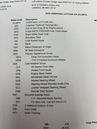 2019 JEEP CHEROKEE lATITUDE SUV 4X4, 2.4L I4 ENGINE, 9 SPD-AUTOMATIC.