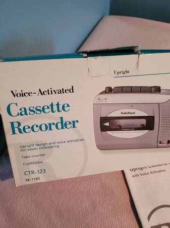 Radio Shack Voice Activated Cassette Recorder, CTR-123. Installed batteries and everything works, batteries and cassette tape not included. See pictures for information and any imperfections. Box isnt in perfect condition. Used