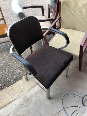 Chairs chairs and chairs metal frame with cloth seats & wooden...