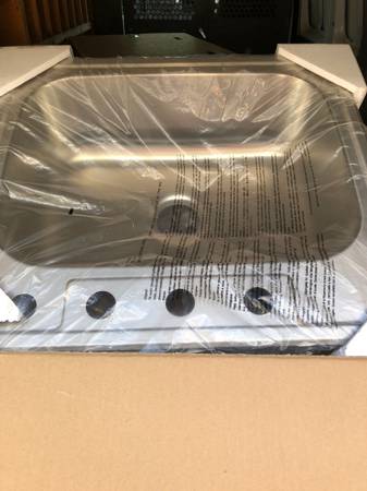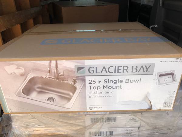 Have for sale a kitchen sink. Made by Glacier Bay. Model number 114-559. Is a 25" single bowl. Brushed stainless steel. The size is 22" wide, 25" long and 8" deep. Sink brand new in box. Retail at...