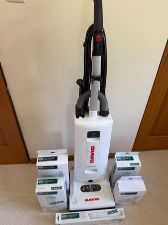 Heavy duty. Good suction. Fits under furniture. 40 ft cord. Rubber wheels and bumper. Large 1.4 gal HEPA bag. Comes with additional tools. Orig $1292.