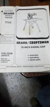 Craftsman , Radial arm saw , contractor series , 3 hp , 10-in , on fixed stand , like new , with owners manual .