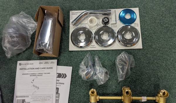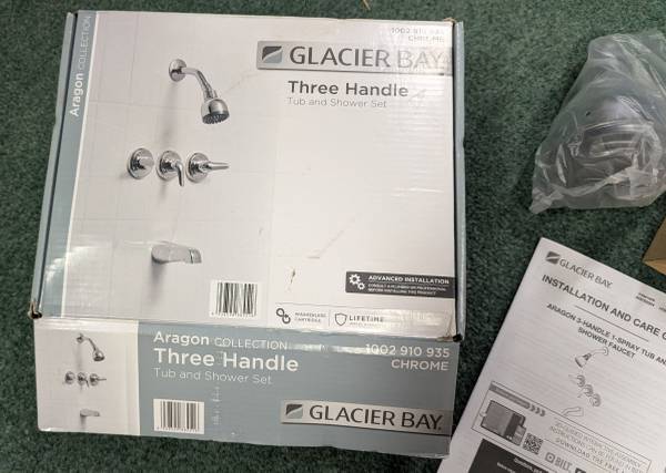 The Glacier Bay WaterSense Aragon 3-handle 1-spray tub and shower faucet in chrome is practical and attractive and will complement a wide variety of bathroom decor. WaterSense certified, this faucet has a 1.8 GPM rate to help reduce water use. The 3-handle lever handle design allows you to precisely control water flow and temperature, while the single-function shower head provides consistent water flow for an enjoyable shower experience. Durable with an easy to clean chrome finish. Pair with other pieces from the Aragon Collection for a complete and polished look. $99 plus tax at HD.
