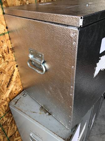 Have for sale square metal or aluminum boxes. Have covers or lids that lift up on hinges. Have heavy duty handles on the side for easy carrying. The size is 14 1/2" long, 14 1/2" wide and 17 1/2"...