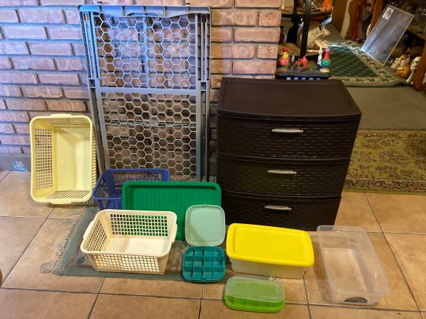 FREE DELIVERY IN SAGINAW AREA ! (NOTHING IS SOLD SEPARATELY) 3DRAWER STORAGE AND MANY STORAGE CONTAINERS EXPANDABLE DOORWAY SAFETY GATE SOLD ALL TOGETHER FOR : $25 FOR EVERYTHING ! NOTHING IS SOLD...