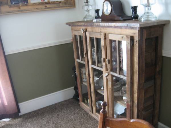 The size for the china cabinet is 51 1/2" tall, 52" wide and 16" deep. All glass intact on this piece. Coated with a satin finish to help preserve the wood. Very, very heavy so you will need at least three people or two very strong men to move. Pick up Alma, Mi. no holds, first come.
