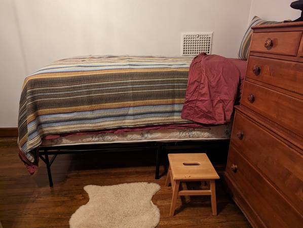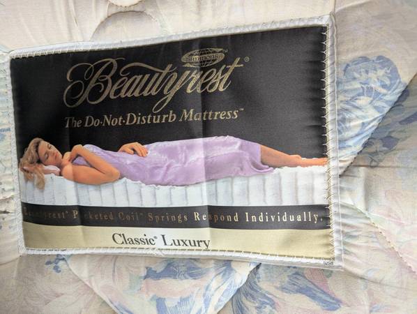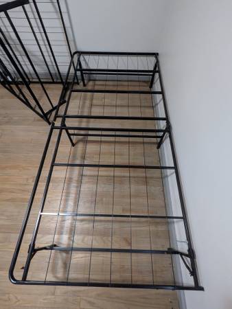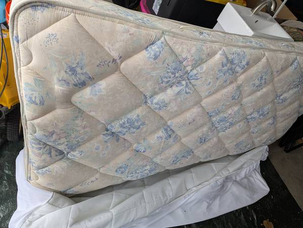Two very comfortable high-quality Simmons Beautyrest Twin XL mattresses, with cotton mattress pads. No stains or tears, used in guest room. The folding frames can be used separately or bolted together for one regular sized King bed. Currently in the garage for easy loading! $90 each set or $160 for both.