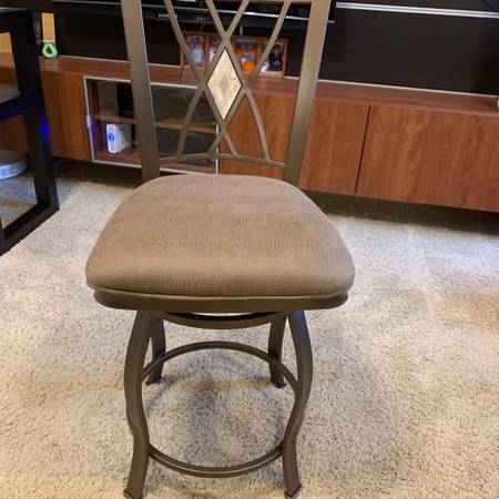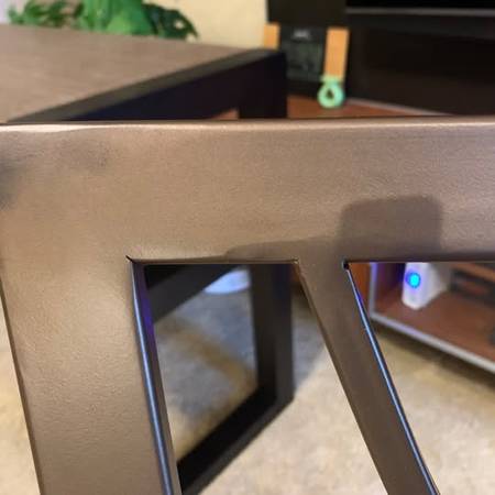It is brand new and excellent condition. There no damages as shown in the photo but the upper left corner of the chair back, the bronze color is a little bit rubbed off. And on the back of the chair, there’s manufacturer’s flaw as the metal looks like it has been scraped off. This product was taken out of the package for pictures taken. Open Box. SOLD AS IS. Frankenmuth, MI meet.