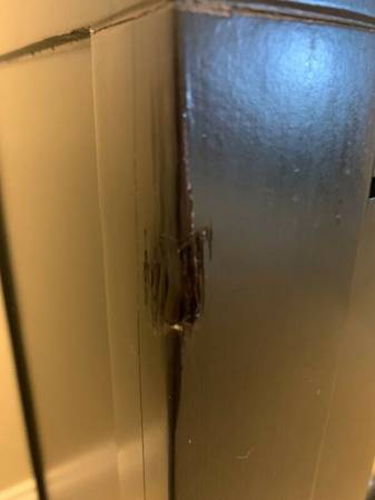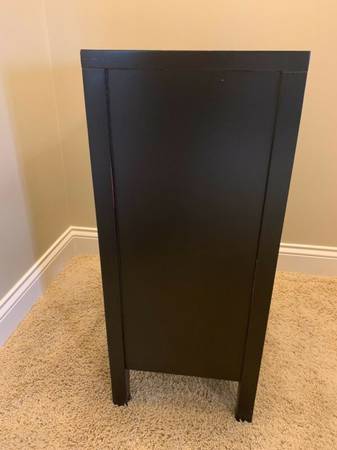 It is a brand new OPEN BOX. There is a large distressed dent around 2” on the left side of the cabinet. Inside the cabinet, there’s a crack in the wood where the top shelf is. Also, the top has a strange streak on it as shown in the photo. SOLD AS-IS. Items are from a SMOKE-FREE home.