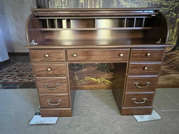 Solid wood desk with locking (with key) roll-top Pickup only. Cash only.