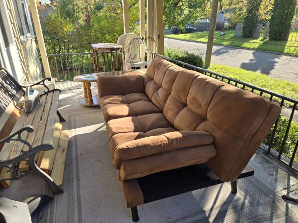Excellent Condition Chocolate Futon/Couch with adjustable armrests Please message me for details Available for pickup or delivery No Refunds