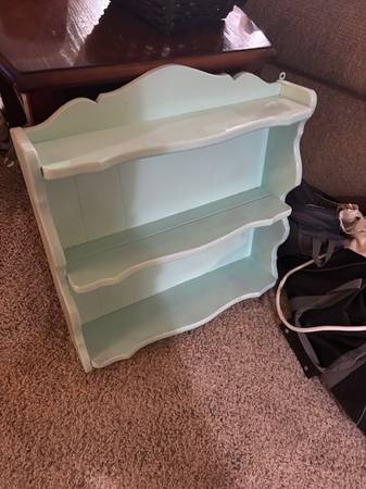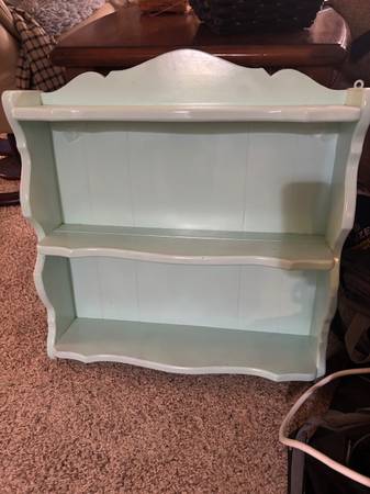 Mint green hanging wall shelf. Willing to negotiate some, willing to drive up to 20 miles.