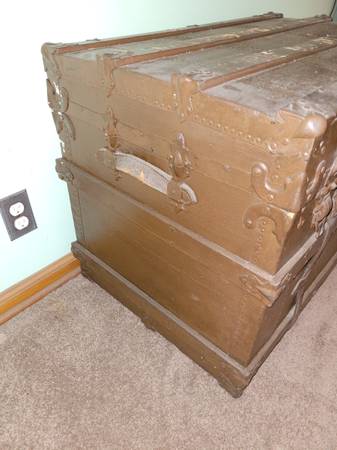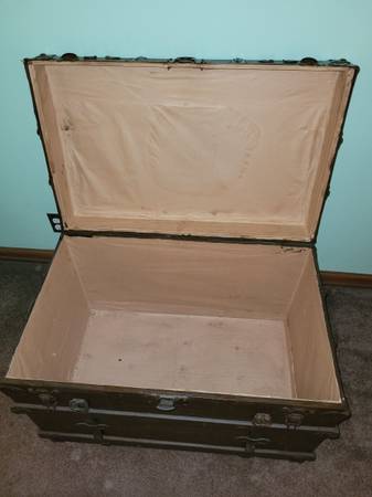 Vintage Steamer Trunk, Chest On wheels, measures about 22" wide x 34" long x 24 1/2" tall. Used