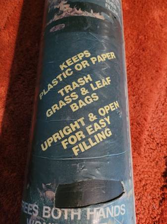 Lawn And Leaf Bag Holder, it holds your bags open so you can fill them with ease. Made of plastic. Still new in its package. See pictures for information and any imperfections. New Bx stacked
