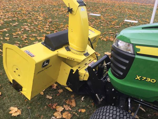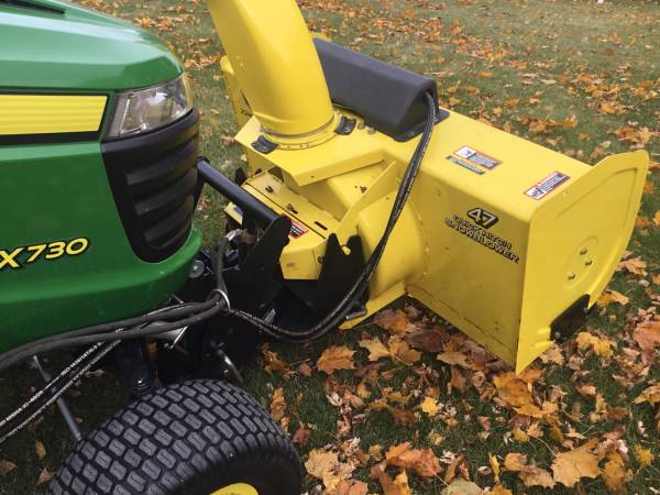JD two stage 47” snow blower with quick hitch & pto shaft will fit all JD X700 series two wheel drive, & may fit others