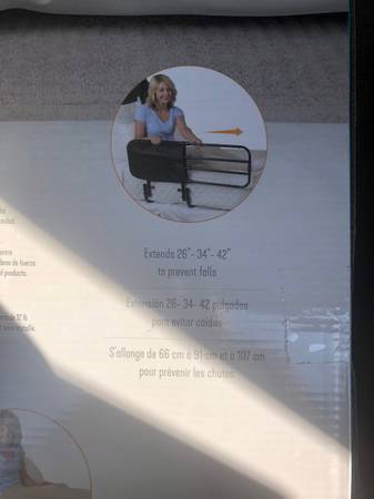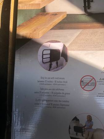 Have for sale EZ Adjust Bed Rail. Made by Stander. Fits under mattress between 12 and 18 inches thick. Extends 26" - 34" - 42" to prevents falls. Supports up to 300 pounds. Safety bed rails pivots...