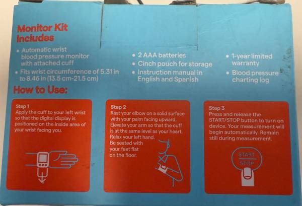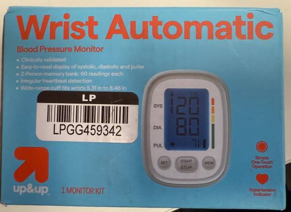 Wrist Automatic Blood Pressure Monitor, currently $40.99 on Target's website. New in open box, fits on your wrist, single button operation. Also detects irregular heartbeat and hypertension.