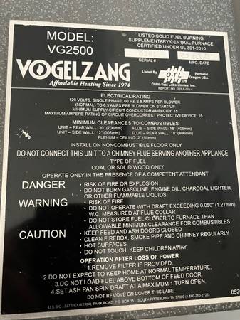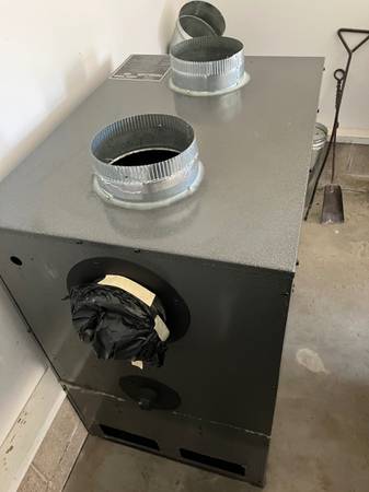 Wood burning furnace with blowers and duct work. Works good. Has home built filter box for blowers. Always kept clean. Will need new fire brick. Heats 2500 sqft