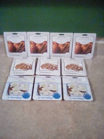 10 Packs Warmer Fragrance Disks, these are for warming containers or plates. There are 4 pumpkin spice, 3 vanilla, 3 boardwalk toffee. These are all brand new never opened. New