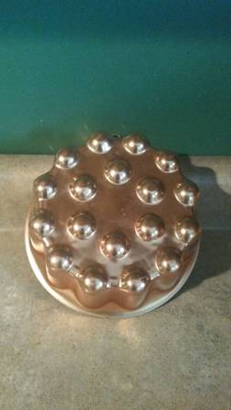 Jello Mold-Round, measures about 6 3/4" across, holds 4 cups. Scuff marks. Used