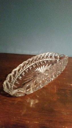 Long Serving Dish, measures about 4 1/2" wide x 12 1/2" long x 2 1/4" tall. No cracks, two small chips underneath. Used I do ship, buyer pays shipping cost.