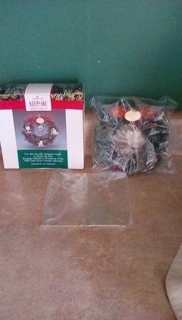 Vintage Hallmark Keepsake Ornament Wreath With Stand, 1990, never been hung up. Measures about 5" across.