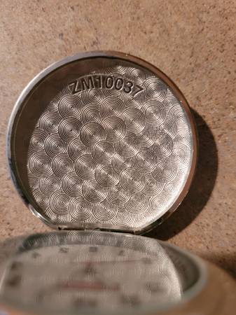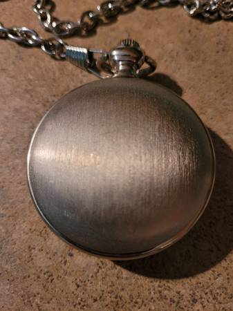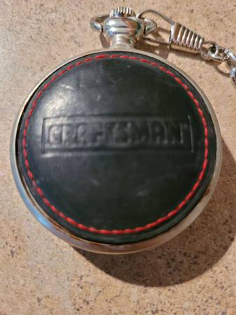 Craftsman Pocket Watch, ZM10037, measures about 1 3/4" across, needs battery, untested. Time hands do move when you turn the knob. Locks and unlocks good, minor scuff marks. Used