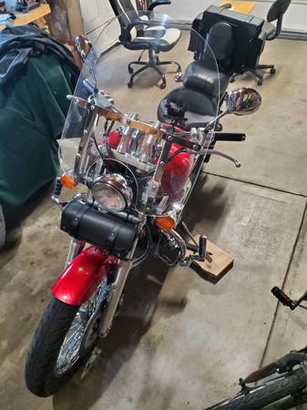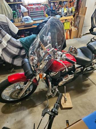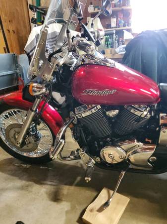 2007 Honda Shadow in excellent condition $4300 , 16300 miles, new brakes front and rear, new wheel bearings front and rear, carbs. rebuilt, fresh oil change, fresh coolant flush and refill, new spark plugs, new sprockets front and rear, new o-ring chain, new sissy bar with back rest and luggage rack, new mustang 2 up seat ( $750 ), new tires front and rear, new tool bag and rear pack.