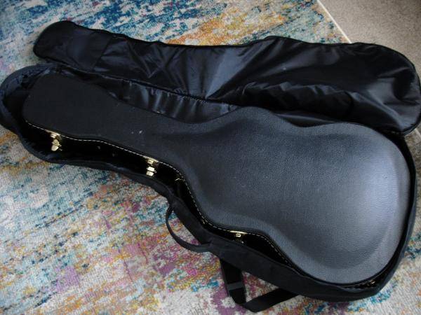 The case is a Silver Creek vintage classical case, it's got some marks on the outside and the inner compartment cover is missing, but all the latches work and it's structurally sound. I have a Gator acoustic bass gig bag I've been using as a case cover which I will also include.