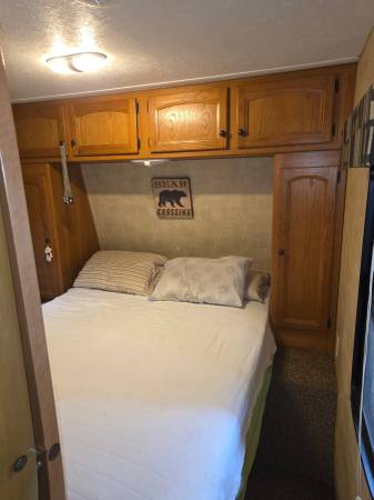 • Original mattress in master bedroom upgraded to a thicker full size queen, better suited for longer camping sessions