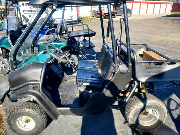 Not sure on the year, we believe to be a 2012 yard sport YS200. gas utility vehicle with dump box, runs and drives great, windshield and roof, headlights tail light, automatic, located in Freeland