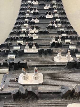 For Sale is a very nice used track off of a 2023 YAMAHA SRX. Will fit YAMAHA Viper, Sidewinder, Arctic Cat, Ski Doo and other snowmobile makes and models. Track is a Casmo Ripsaw II, 137" long by 15" wide with a 1" lug and 2.86" pitch. Track is studded with Stub Boy studs. Low mileage track with No torn lugs, no tears, no pulled through studs. Fully Clipped.
