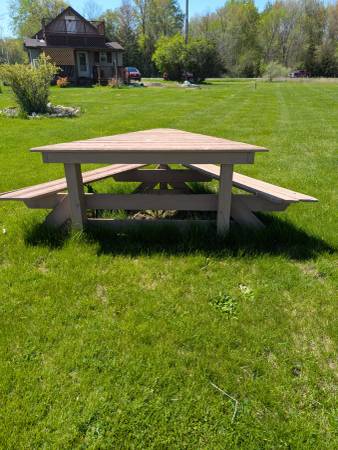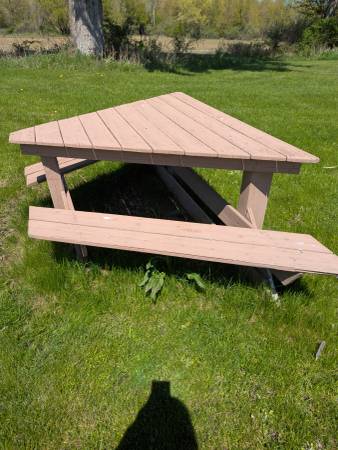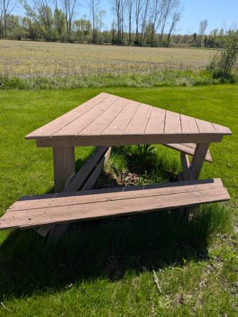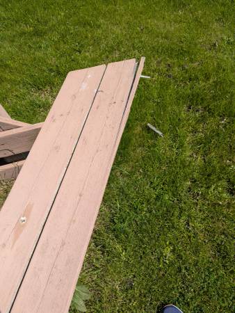 Please view pictures. One of the seat boards seems to have a 'split' that could be easily repaired.