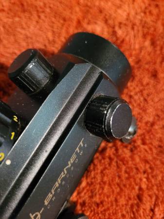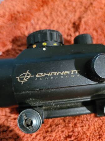 Barnett Crossbow Scope, 3 dots red, green. Needs new battery, untested. See pictures for information and any imperfections. Used Bx83