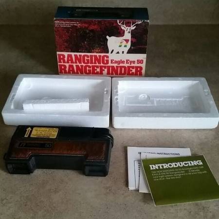 Vintage Rangefinder Eagle Eye 50, for 12 to 70 yards. Comes with original box, unknown if it works. I do ship it, buyer pays shipping cost.